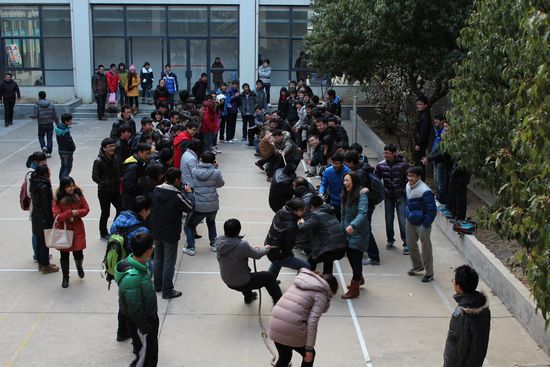 冬天的寒意挡不住教职工们参与比赛的热情,在一片笑闹欢呼声中,土建学院教职工趣味运动会在土建大厅愉快地进行着。我院教职工趣味运动会形式新颖,项目多样,充满趣味性,此次趣味运动会由“趣味保龄球”“沙包掷准”“贴鼻子”“拔河”等17个项目组成,教职工们根据自己的兴趣喜好参与其中。比赛开始后,整个运动场洋溢着欢畅的氛围,呐喊声,加油声,欢笑声交织在一起,此消彼长。在集体跳绳比赛中,教职工们显得非常默契,一上一下,整齐划一,脸上挂满了灿烂的笑容,参加“穿针引线”的老师们聚精会神的纫着手中的针线,丝毫不受会场欢呼声的干扰,参加“趣味保龄球”的老师每每击中目标都会赢得现场同学们的阵阵喝彩,“贴鼻子”比赛的花样百出更是为大家带来无限欢乐,以工会小组为单位的拔河比赛着实将此次运动会推向高潮。在这轻松愉悦的氛围中,教职工们热情积极的参与,丢掉了工作上的疲惫,忘却了生活中的烦恼,与同事们一同竞技,与同学们一同欢笑。