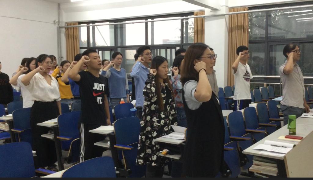 下午4:20,活动在高昂的国歌声中开始,支部全体党员高唱《中华人民共和国国歌》,共祝中华人民共和国成立七十周年。