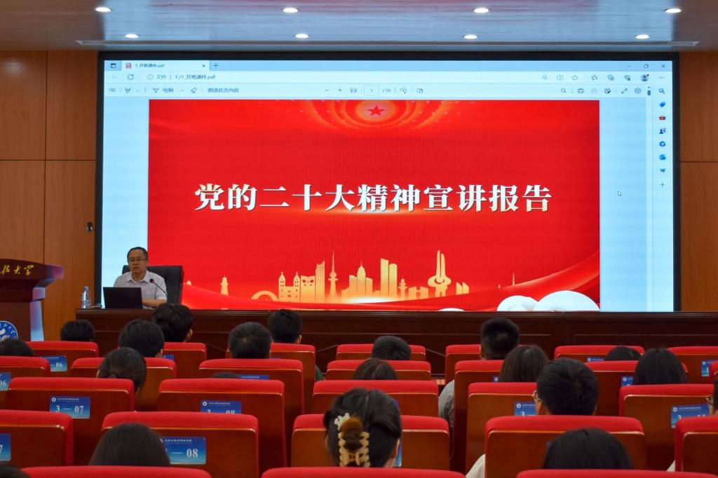 土建学院院长王崇革为学生党员宣讲党的二十大精神