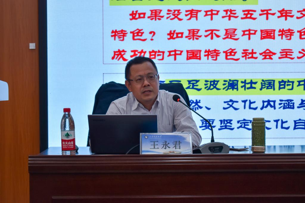 10月25日下午,校党委统战部常务副部长、台港澳工作办公室主任王永君讲授“百年成就的密码与基因”主题党课。王永君以坚定“四个自信”,在中华优秀传统中寻找“源头活水”为切入点,全面而深刻地讲述了习近平文化思想的形成。王永君强调,百年成就的密码与基因源于中华优秀传统文化,是中华文明的智慧结晶和精华所在,是中华民族的根和魂,是我们在世界文化激荡中站稳脚跟的根基。