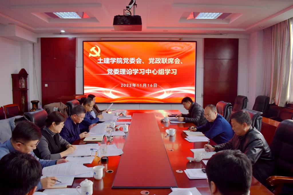 11月16日,土建学院在J15-316会议室召开党委会、党政联席会和党委理论学习中心组集中学习会议,党委会和党委理论学习中心组集中学习由院党委书记宋西路主持,党政联席会就相关议题分别由宋西路书记和王崇革院长主持,学院全体领导班子成员参加。校党委常委、宣传部部长李克周,校工会主席李垂文,宣传部朱文峰列席旁听会议。