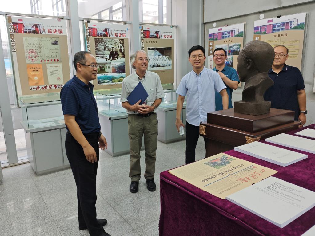 会后,在学院领导和老师的陪同下,Powrie院士参观了被誉为“江北最美校园”的科大校园,以及青岛市海洋土木工程材料与结构重点实验室、结构实验中心和学院院史馆。