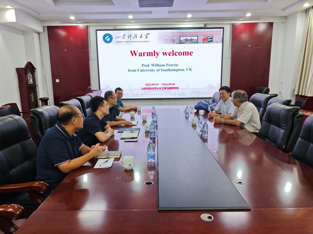 8月5日,在座谈会上,王崇革院长对Powrie院士的来访表示热烈欢迎,并介绍了土建学院在专业建设、学科建设、人才培养及实验室建设等方面的成果。王院长希望通过此次交流深化双方的合作,并为Powrie院士颁发聘书。Powrie院士对学院的热情接待表示感谢,Powrie院士回忆起25年前初次造访中国,与我校杰出校友李术才院士在三峡大坝建立的深厚友谊,并指出青岛与南安普顿同为友好合作城市,期待未来在科学研究和实验室建设等方面加强合作,实现共同发展。Powrie院士介绍了其在环境和交通岩土工程方面的研究,并就当前领域内相关问题进行了探讨,他还诚挚邀请学院的年轻教师和研究生到南安普顿大学进行学术交流。