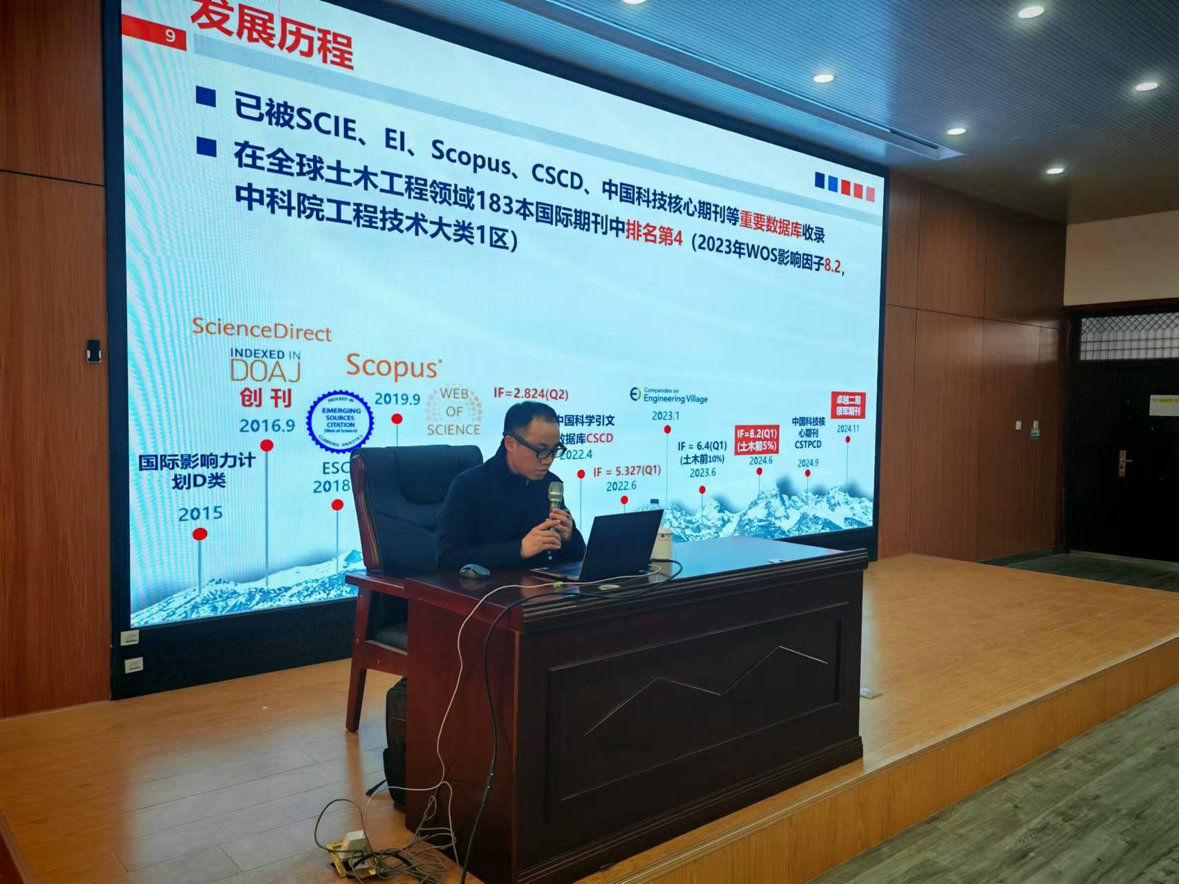 1月6日,学院邀请到《Underground Space》期刊宣传部部长任辉龙来学院开展学术期刊建设交流活动,在J15-136作了题为“Underground Space期刊简介、常见问题与近期活动”的报告,报告由我院副院长秦哲主持,学院教师代表和学生代表参加本次报告。