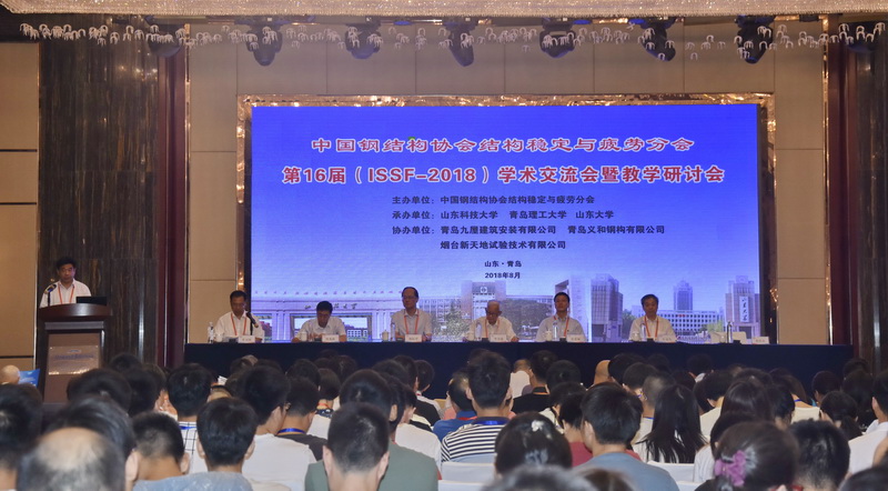 8月26日至28日,由中国钢结构协会结构稳定与疲劳分会主办,我校与青岛理工大学、山东大学共同承办,青岛九屋建筑安装有限公司、青岛义和钢构有限公司和烟台新天地试验技术有限公司协办的中国钢结构协会结构稳定与疲劳分会第16届(ISSF-2018)学术交流会暨教学研讨会在青岛康大豪生大酒店隆重召开。来自全国各地钢结构工程界的专家、学者和学生代表400余人出席了本次会议。