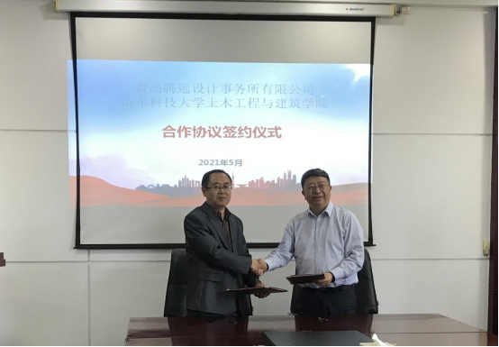 5月18日上午10时,土建学院与青岛腾远设计事务所有限公司的产学合作协议签约仪式在J15-316会议室举行。出席签约仪式的有青岛腾远设计事务所有限公司总裁张舵、结构总工程师孙邵东、规划院院长陆泉、技创中心副总监李冬艳,土建学院院长王崇革、副院长都浩及部分教师代表。
