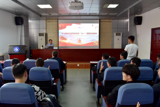 10月13日,校党委常委、副校长张英杰于J15-219报告厅为土建学院土木工程2018-1班及交通学院交通工程2020-1班学生宣讲习近平总书记“七一”重要讲话精神。土建学院党委书记宋西路主持会议。