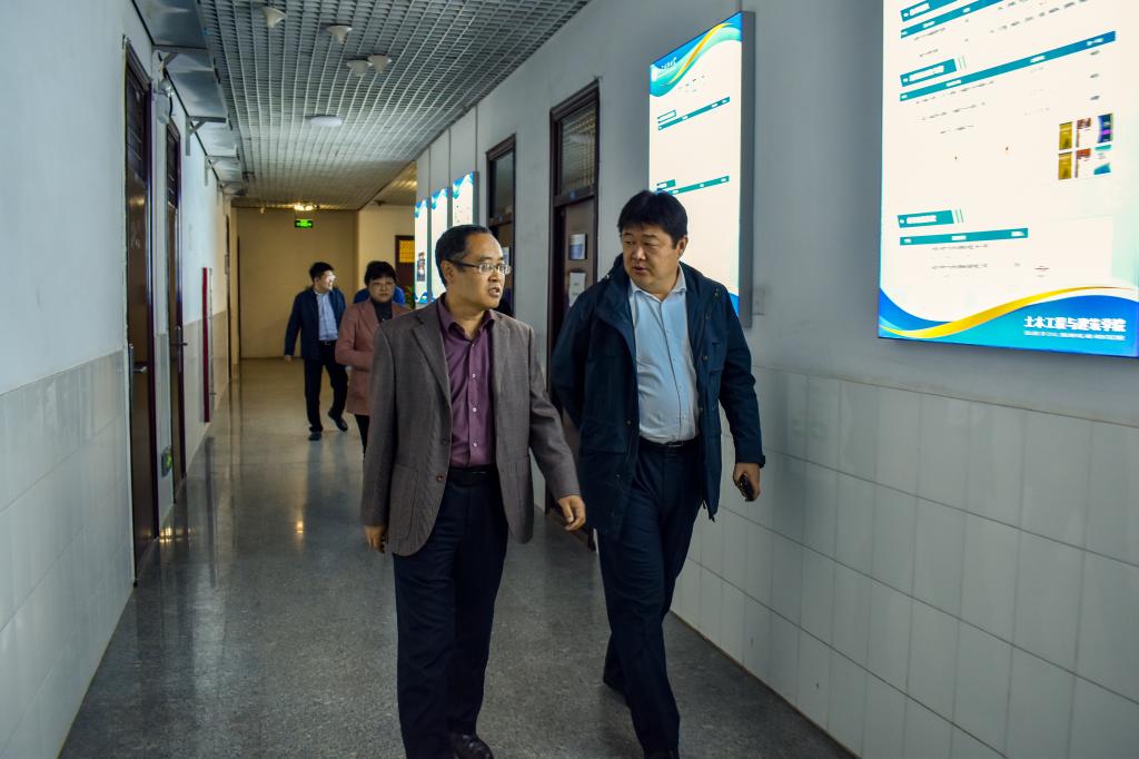 为全面深化校企合作,精准对接人才供需,10月28日下午,青岛市公路事业发展中心副主任王震、青岛大学发展规划处副处长刘新、青岛路桥建设集团人力资源部(党群部)部长谢振宇和青岛市公路事业发展中心农村公路服务处副处长薛崇山一行来院参观交流。山东科技大学土建学院院长王崇革、学院党委副书记高静、学生处公寓管理中心主任赵洋、道路与桥梁工程系主任单景松、副主任聂瑞锋、学生工作办公室主任朱统汉、毕业生辅导员刘超参加交流会。