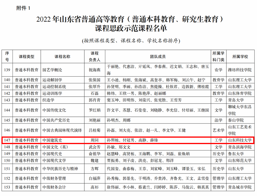 喜报:我院周同老师主持《中国建筑史》课程喜获山东省课程思政示范项目