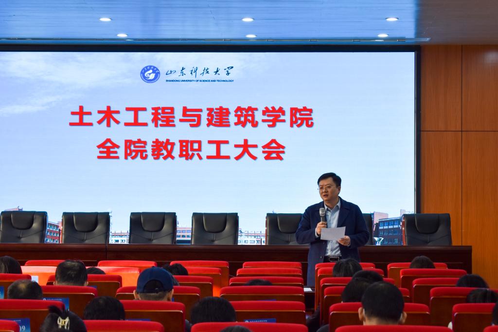 2月19日下午,土建学院在J15-136报告厅召开全院教职工大会,会议由学院党委书记宋西路主持,全院教职工参加会议。