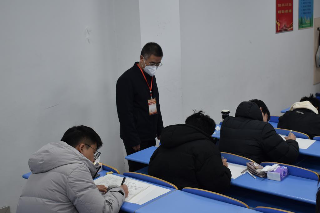 为进一步加强期末考试组织管理,严肃考风考纪,扎实推进学风工作,2月20日,学院党委书记宋西路带领学院领导班子成员、教学督导深入考场进行巡查。巡考期间,学院领导向监考老师详细了解考试工作组织实施情况,对考场秩序、监考老师履职、考生出勤、考试纪律和考场记录等方面进行检查,向没有考试任务的同学了解备考情况。从巡查现场看,各考场考试组织规范有序,监考人员认真履行监考职责,学生遵守考试纪律,考场秩序良好。