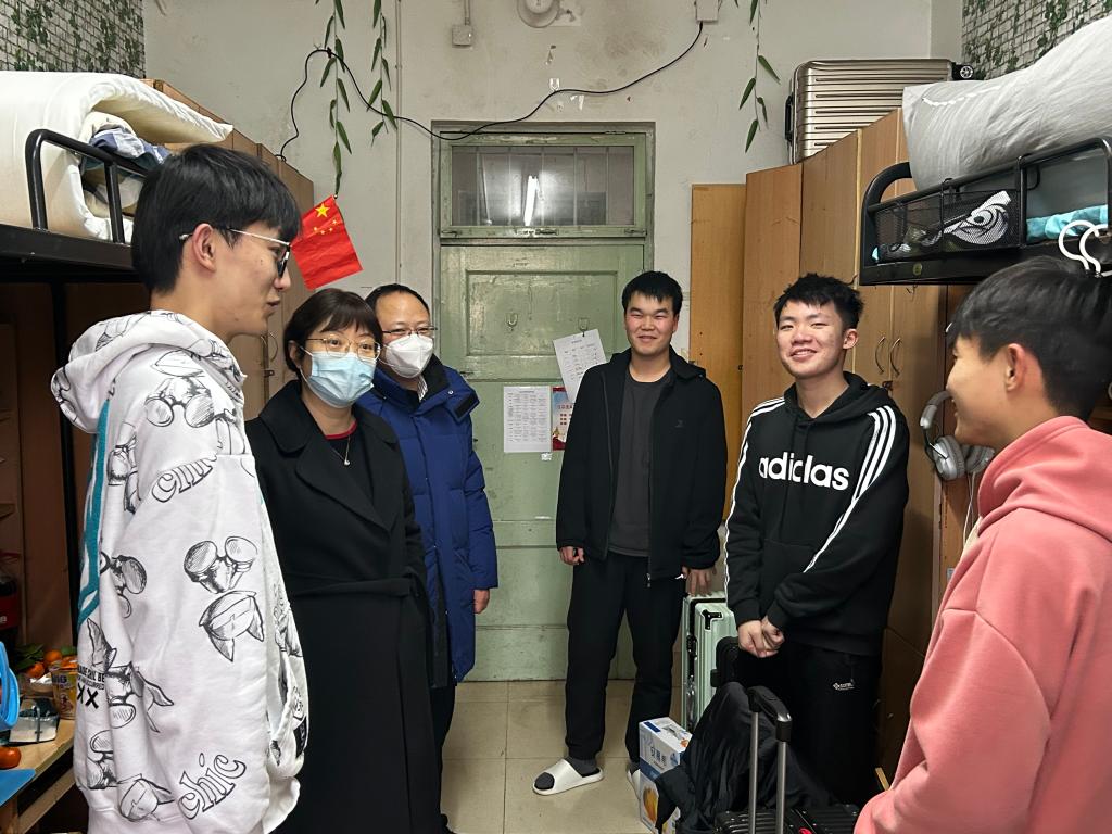 学生返校后,学院党委副书记高静带领全体辅导员深入学生宿舍,与返校学生亲切交谈,认真聆听学生心声,询问学生开学的返校状况,耐心解答学生的问题。鼓励在新学期做好学习规划,养成良好生活习惯,尽快适应新学期的学习及生活,共同营造良好的宿舍学习氛围与相处环境。同时向同学们普及疫情防控知识,排查宿舍安全隐患,提醒同学们注意宿舍安全用电、防范诈骗。
