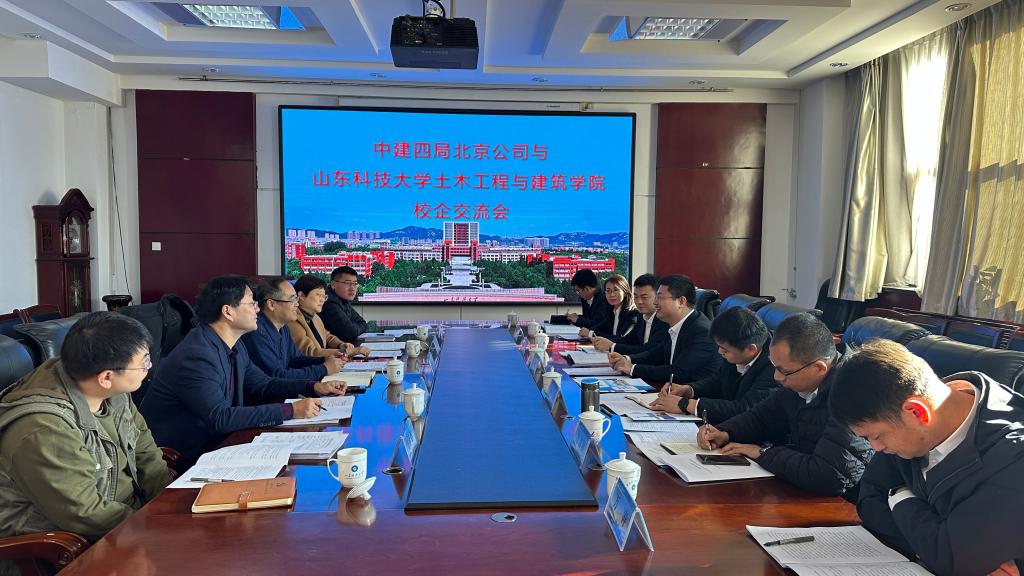 11月17日,山东科技大学土木工程与建筑学院、中建四局北京公司校企合作对接交流座谈会在学院举行。中建四局北京公司党委副书记、总经理林环周一行七人来访,与学院开展座谈交流。学院院长王崇革,党委副书记、副院长高静,教师代表代春泉,辅导员王贝贝、刘泽群参加座谈。