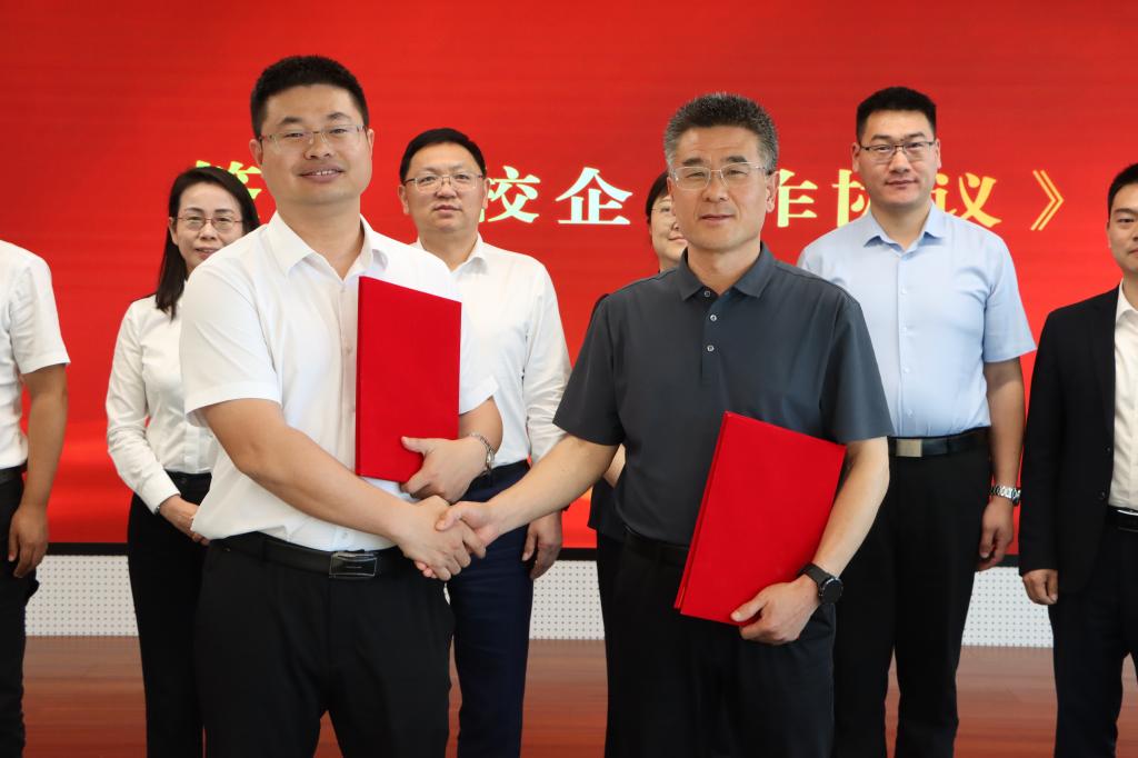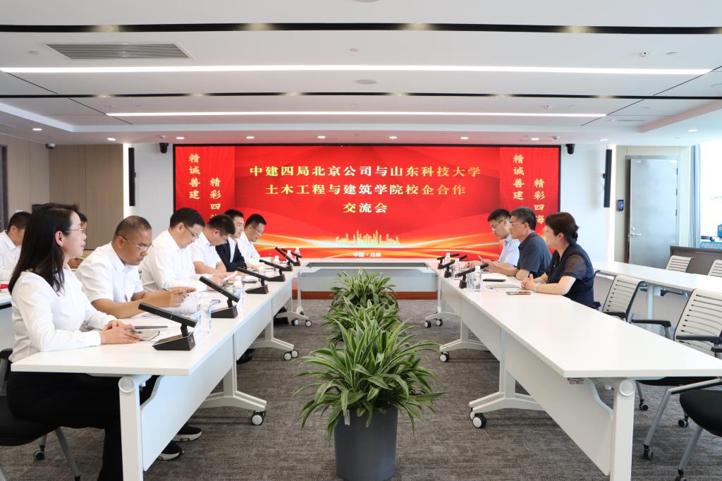 在与中建四局北京公司座谈中,宋西路从办学历史、学科建设、师资队伍、人才培养、科学研究等方面介绍了学校、学院基本情况,希望双方能够深度联动、携手并进,促进共同发展,树立校企合作的典范。中建四局北方分局常务副局长、北京公司党委副书记、总经理林环周对宋西路一行表示欢迎,介绍了企业基本情况,希望双方以本次座谈交流为契机,持续加大校企协同育人力度,不断扩大合作规模,实现优势互补、合作共赢。会上,双方共同观看了山东科技大学和企业宣传片,宋西路与林环周签订了《中建四局北京公司与山东科技大学土木工程与建筑学院校企合作协议》,高静为中建四局北京公司授牌“山东科技大学大学生就业创业实践基地”,与会人员围绕产学研融合、人才培养、校园招聘、实习实践深入合作进行了交流。