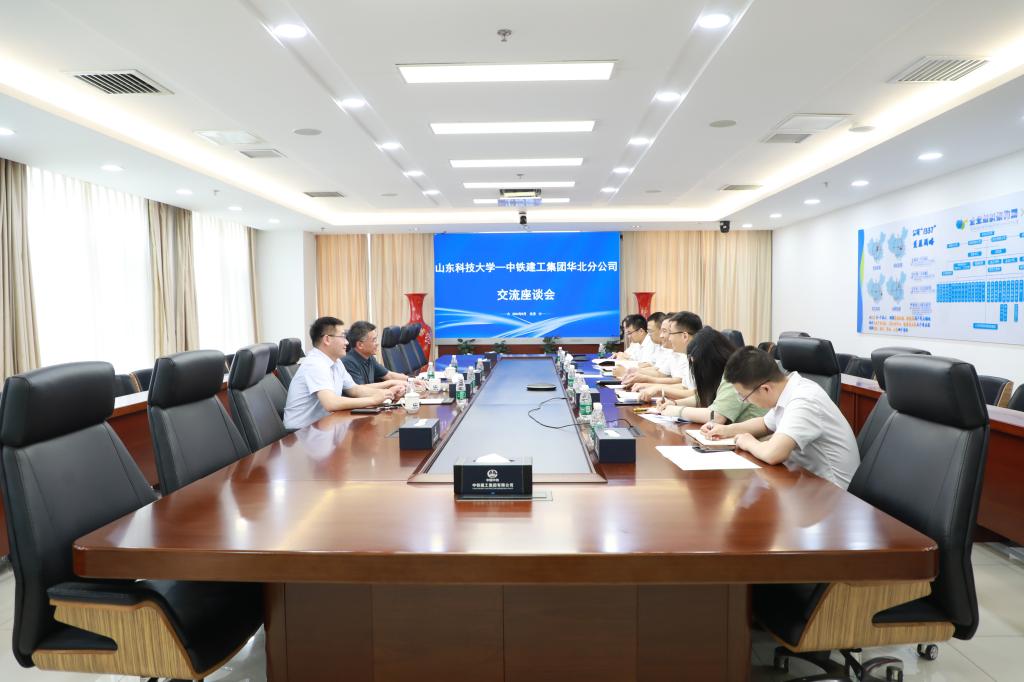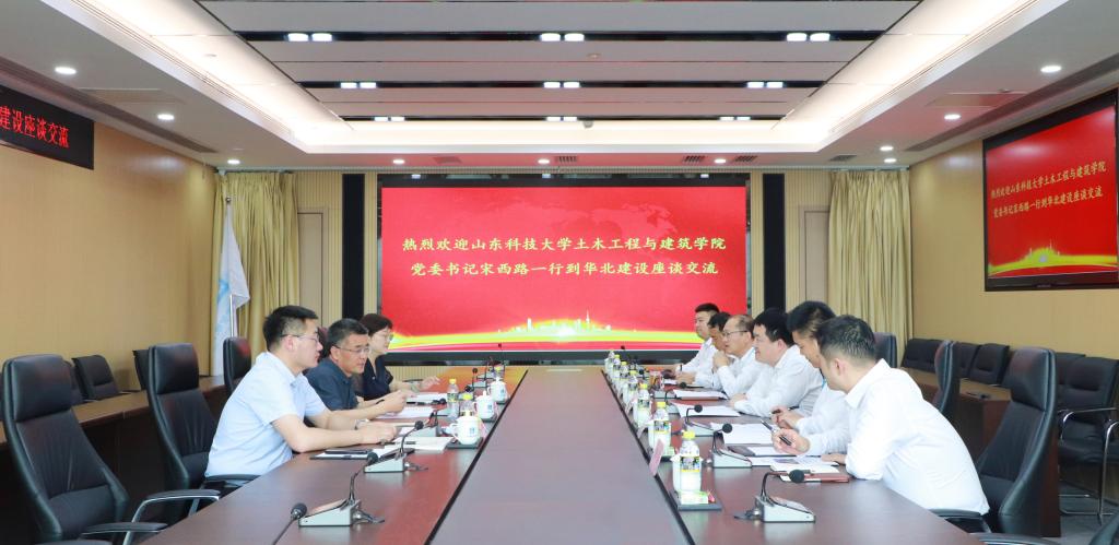 在与中铁建工集团华北分公司座谈中,双方共同观看了山东科技大学和企业宣传片,宋西路从办学历史、学科建设、师资队伍、人才培养、科学研究等方面介绍了学校、学院基本情况,希望以此次走访为契机,双方加强交流与沟通,致力在科学研究、人才培养及人才招聘等方面寻求校企合作。中铁建工集团华北分公司党委书记杨盼兴对宋西路一行表示欢迎,介绍了企业基本情况,希望双方不断增进交流与了解,寻求校企合作机遇,实现聚合力、促共赢。与会人员围绕行业发展形势、人才需求、实习实践、产学研合作等方面进行了交流。