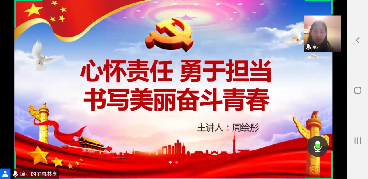 近日,由山东科技大学校研究生会学术部与初心使命研究生理论学习小组主办、土建学院研究生会承办的思政类研究生讲坛第9讲通过腾讯会议APP平台成功举办。土建学院2017级硕士研究生周绘彤担任主讲人,讲坛题目为《心怀责任,勇于担当,书写美丽奋斗青春》。