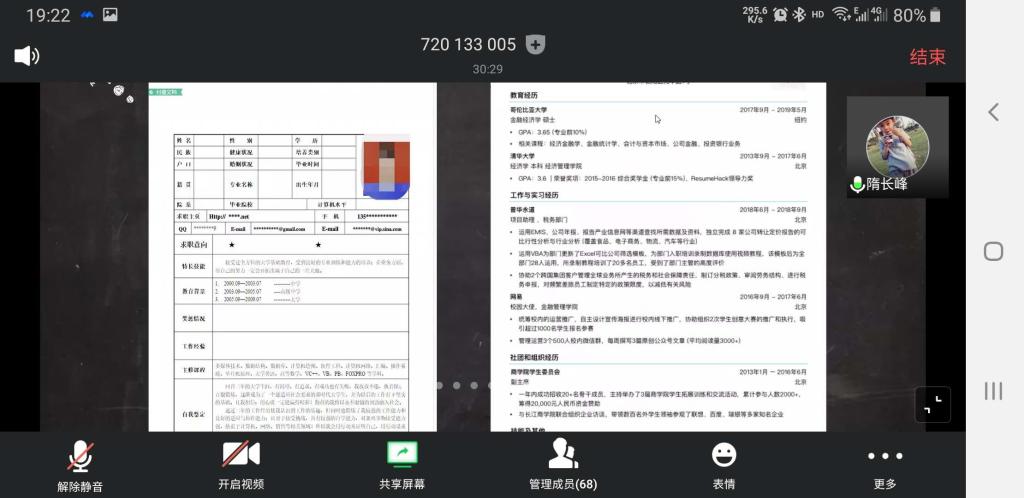 4月29日晚,由山东科技大学校研究生会学术科技部主办、土建学院研究生会学术科技部承办的第802期研究生讲坛通过腾讯会议APP以线上形式开展。本期讲坛邀请到2017级土建学院硕士研究生隋长峰担任主讲人,题目为《决胜秋招,把握人生——我的面试经验分享》。
