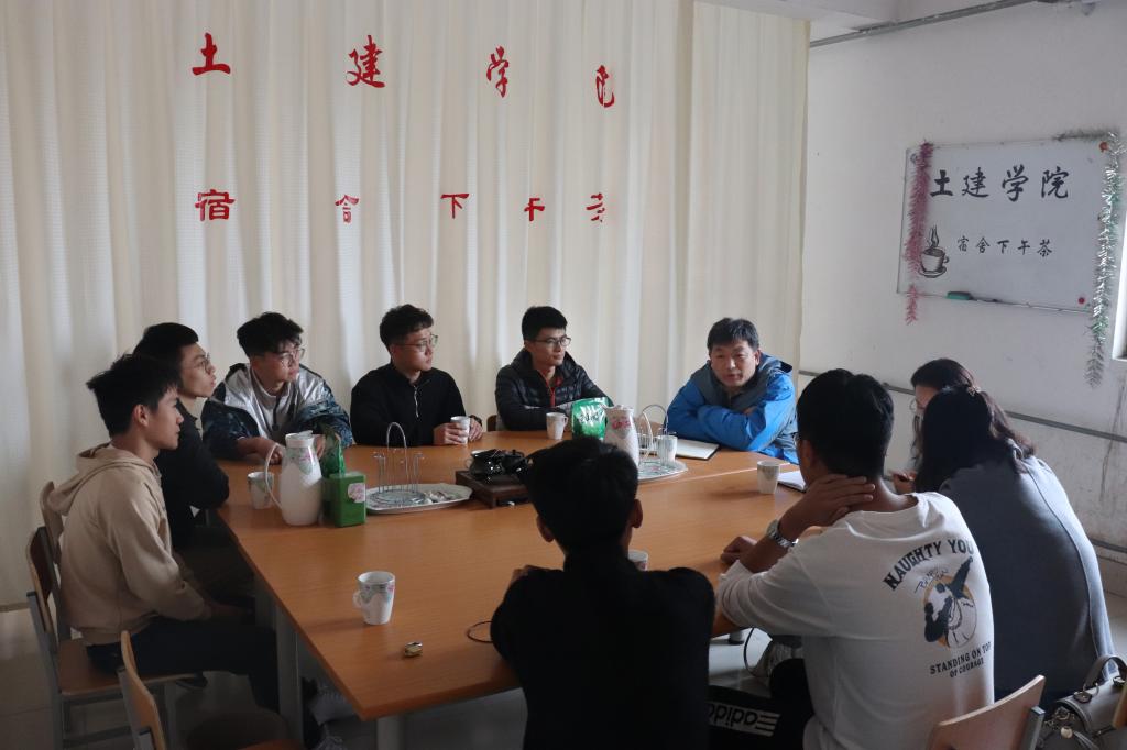11月6日下午,保卫处处长申玉三做客土建学院“宿舍下午茶”,与其领导干部联系基层学生对接的工程管理2018-2班的7名同学进行座谈,一同交流问题,答疑解惑,土建学院团委书记于娜及辅导员张翌陪同参加。