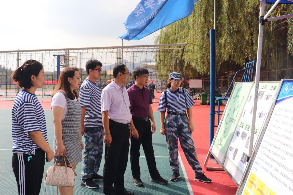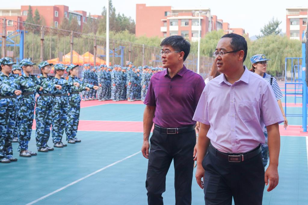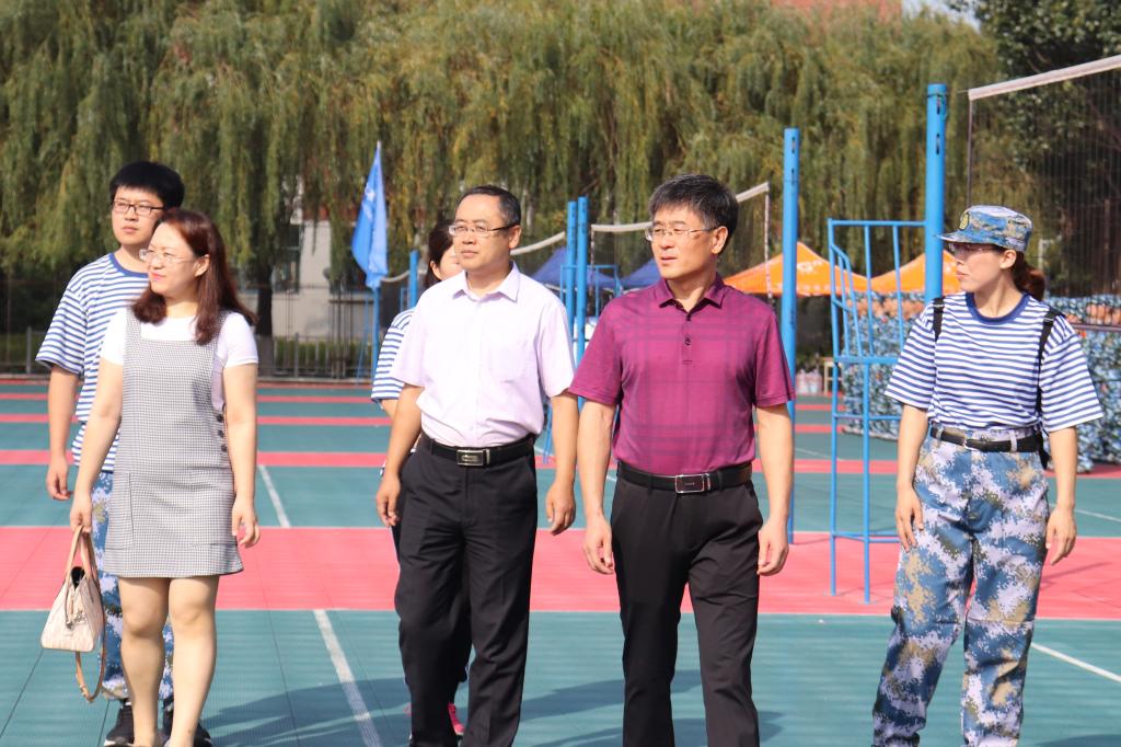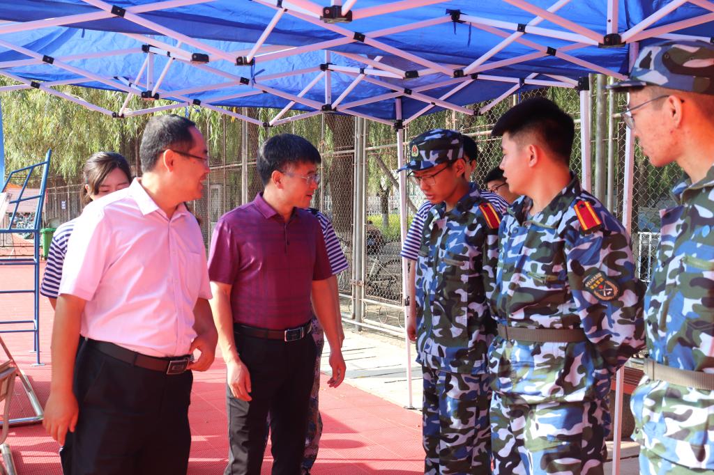 上午,土建学院党委副书记(主持工作)宋西路、院长王崇革在团委书记于娜及19级辅导员的陪同下前往训练场地,对新生军训的情况进行了详细了解和指导,对在场工作人员进行了慰问,对因伤无法参训的同学们表示关心,对军训场地布置和宣传工作进行了视察。学院领导还进入训练场地,驻足观看学生们的训练情况,与各位教官进行了交流,对他们的耐心指导和辛苦付出表示了感谢。