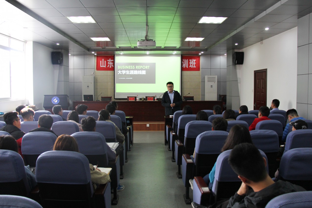 开班仪式后,张凯元为大家带来了的课程第一讲——《大学生生涯发展时间表》。他先后从分享篇、考研篇、求职篇三个篇章为大家讲解关于职业规划的问题。在分享篇中,张凯元与同学们分享了自己大学时的故事,讲述了自己人生中四个重要的转折点,告诫大家莫要心高气傲,要时刻保持谦逊。在考研篇中,他建议同学们在本科阶段多积累知识和实习经历,考研与否要视情况而定,要认清自己的实力并且选择最适合自己的道路。在求职篇中,他与大家分享了自己在面试技巧、大学生创业等方面的看法,并就去哪里找工作、就业前该做何准备等问题给出了自己的答案。之后,张凯元另就行业及岗位问题展开了讲述。他通过对房地产、互联网、金融咨询、快消等经典行业的分析,让同学们对当今的行业形势有了初步的了解。张凯元还跟同学们分享了自己从业十几年来和创业一年来积累下的宝贵经验,以及自己在职场经历中听到过的意义深远的话,句句直入人心,令在场同学受益匪浅。