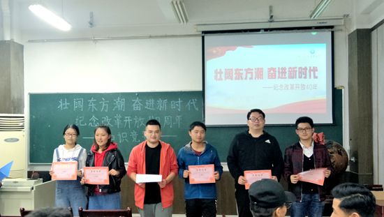 壮阔东方潮,奋进新时代。为更好地引导同学们学习、了解改革开放这一伟大壮举,弘扬改革开放精神,增强同学们在实现中华民族伟大复兴进程中的责任感和使命感,土建学院团委、研究生会于10月23日晚在学院楼会议室举办了主题为“壮阔东方潮,奋进新时代”庆祝改革开放40周年知识竞赛活动。