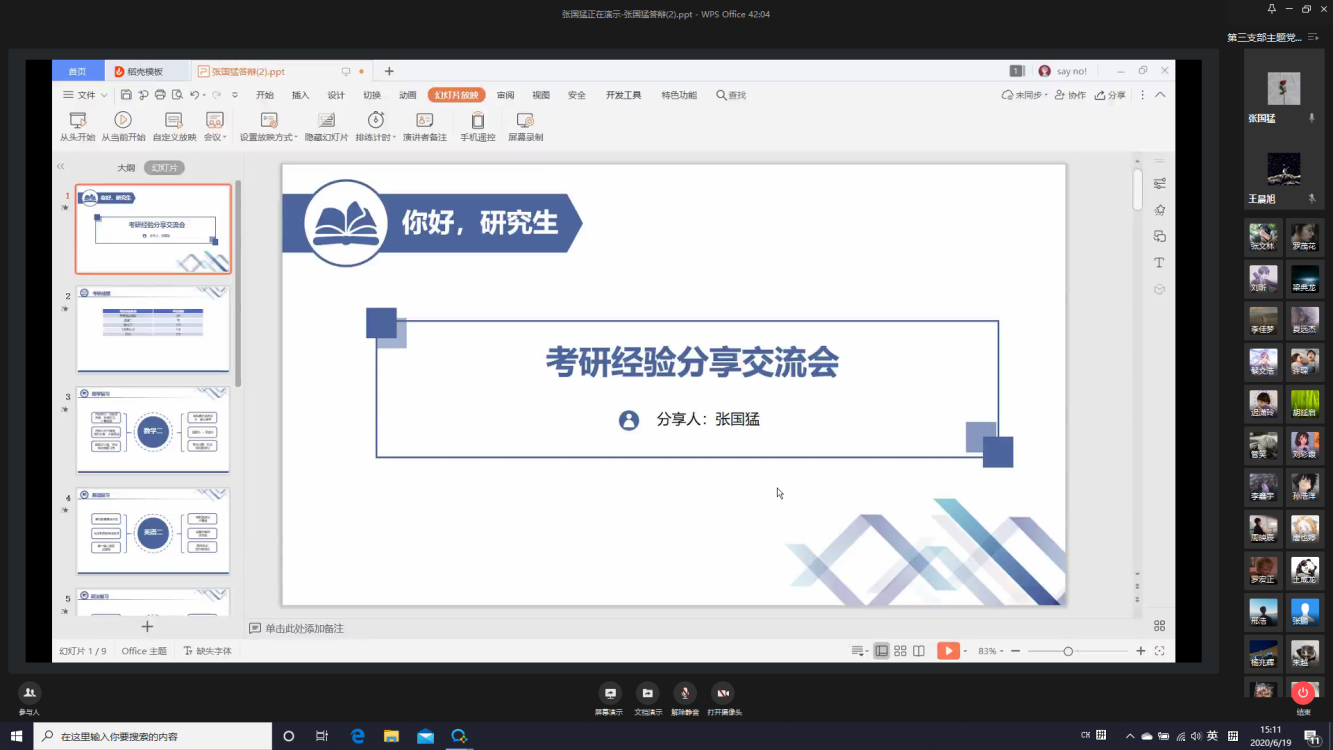 6月19日,土建学院本科生第三次党支部通过企业微信平台举办“榜样的力量”分享交流会。此次党日活动由党支部书记朱统汉主持,邀请了四名毕业生党员向低年级同学分享经验。