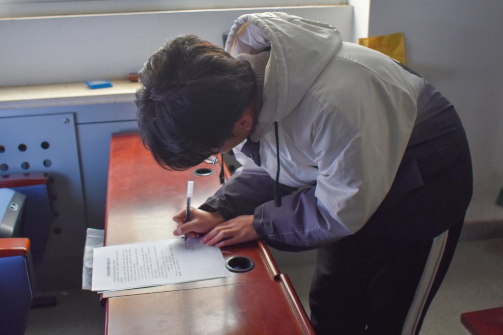 会议伊始,朱彤彤向同学们普及了新型诈骗的有关知识及预防措施,并以真实案例向学生们介绍各种诈骗类型,同时普及识别诈骗的方法。在接下来的活动中,组织参会同学参加防诈骗知识竞赛来巩固同学们反诈防骗的防范意识以及区分诈骗的行为能力,并组织“正话反说”小游戏让同学们更加深刻的记住十种常见诈骗类型。最后,所有参加此次活动的学生签署《不参与电信网络诈骗犯罪承诺书》及《防范电信网络诈骗告知书》,承诺在反诈骗中贡献出自己的力量。