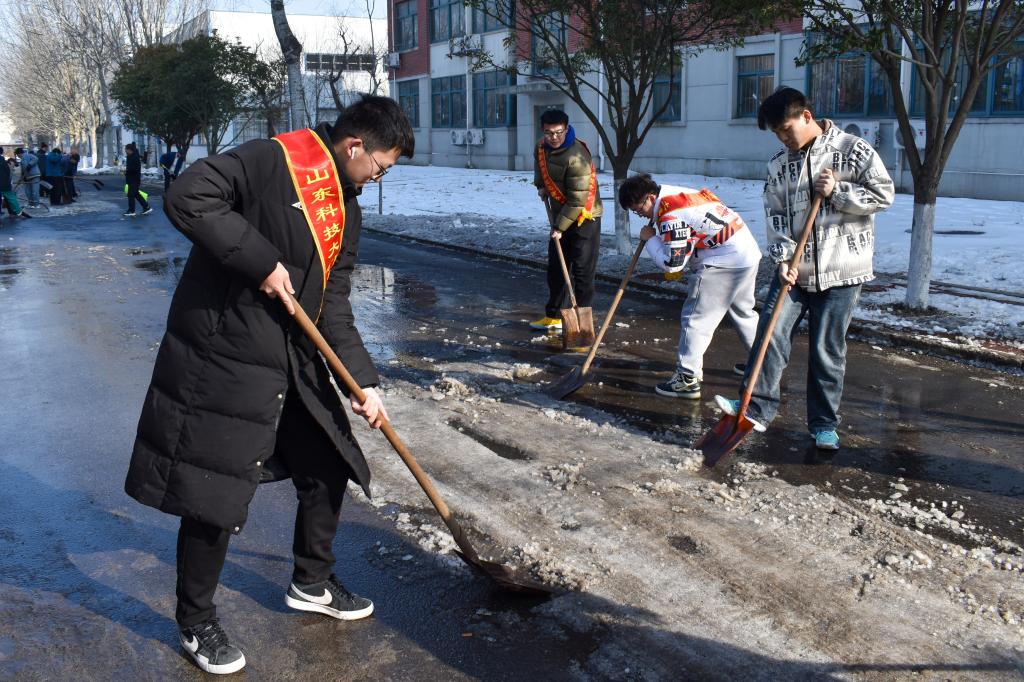 学院青年志愿者“清冰除雪”,寒日扫出校园“暖心路”