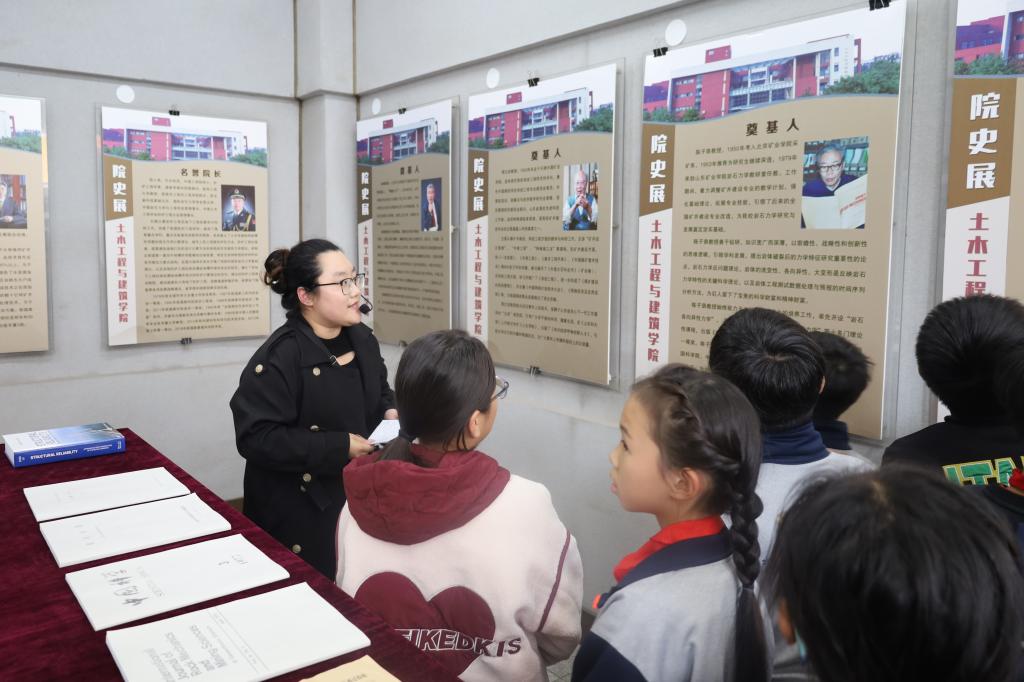 学生们首先来到土建学院门前瞻仰陈子荫先生塑像,讲解员赵珂为在场师生讲述了陈子荫先生的一生,展现了陈子荫先生对科学研究的坚持、对教育事业的热爱、对育人情怀的坚守。在土建学院院史馆,赵珂还向学生们讲述土建学院的发展历程、学科建设以及杰出校友等多方面的情况,让学生们更深入了解土建学院浓厚的历史底蕴和独特的人文魅力。