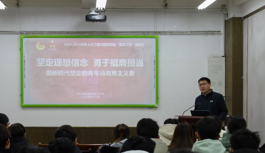 为深入贯彻落实习近平新时代中国特色社会主义思想,强化马克思主义理论教育,提升我院青年学子的思想政治素养和综合能力,11月8日,土建学院举办2024-2025学年“青马工程”基础班开班仪式暨开班第一课。土建学院团委书记、学工办主任王贝贝,团委辅导员老师赵珂,学院部分团支部委员和“青马工程”基础班全体学员参加。
