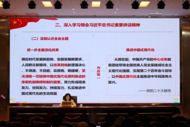 学校“山海泉”理论宣讲团成员、马克思主义学院尹诵为学院全体辅导员以“进一步全面深化改革 推进中国式现代化”为主题系统阐释党的二十届三中全会精神,以清晰的脉络、生动的语言对党的二十届三中全会精神和《中共中央关于进一步全面深化改革推进中国式现代化的决定》进行了全面解读,从历史逻辑、现实逻辑和实践逻辑三个层次阐明了进一步全面深化改革的里程碑意义;从历史考察、现实审视和未来指向三个方面分析指出党的二十届三中全会精神是一次举旗定向的目标指引,对于我国进一步全面深化改革、推进中国式现代化具有深远的战略意义。