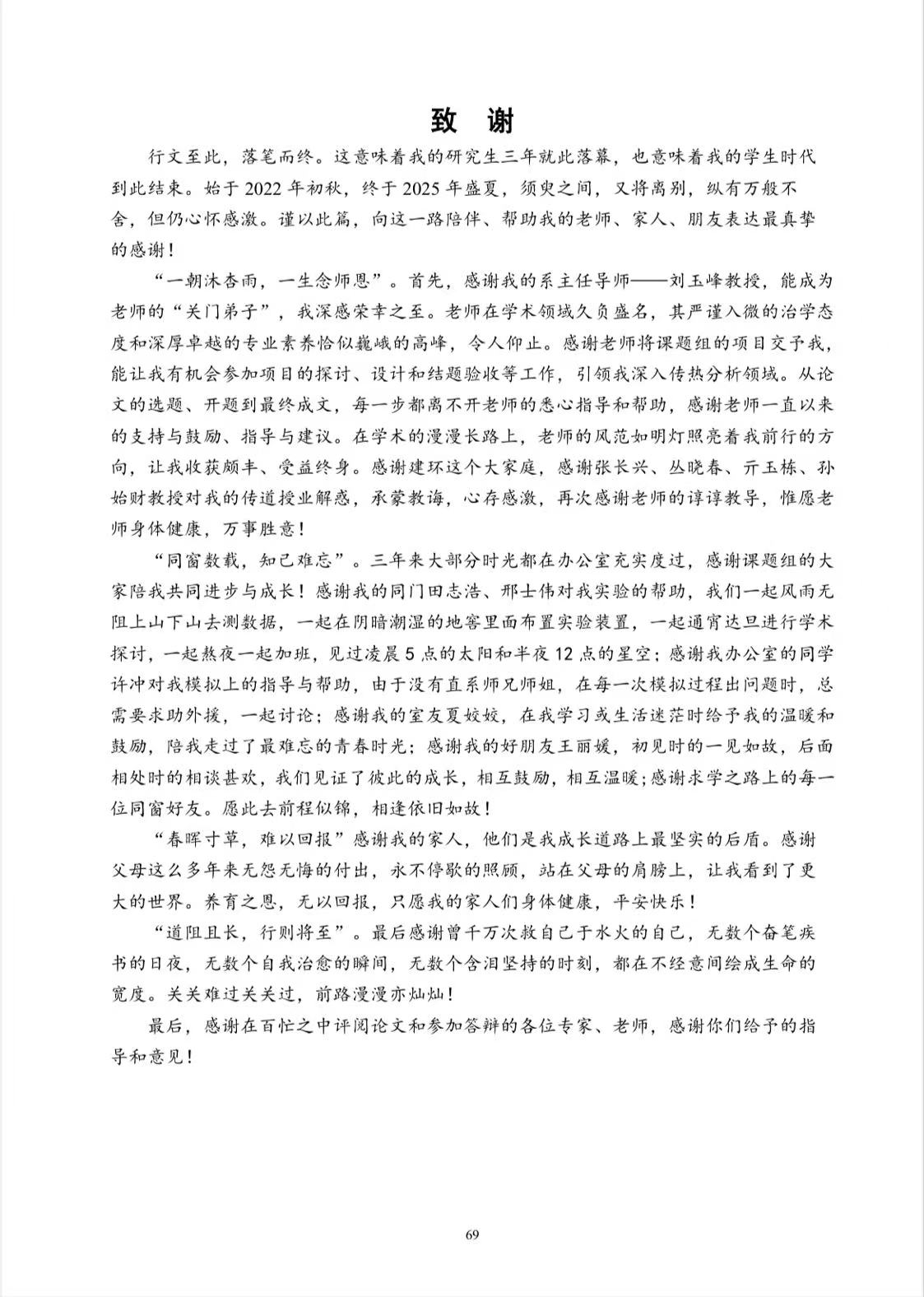 从面对模拟软件报错的手足无措,到能独立设计复杂算例的从容不迫,申慧营同学用“关关难过关关过”总结这段蜕变之旅。王晓楠同学将学术探索比作“在迷雾中攀登一座看不见顶峰的山”,感恩身边人“在每次滑倒时伸来的手”。李椿萌同学完成了一场心灵的蜕变,领悟到平凡亦如香椿树般,在静默中积蓄力量,在时光里沉淀成长。特别令人动容的是,许多同学在致谢中不约而同地感谢那个在至暗时刻仍高举火把的自己。