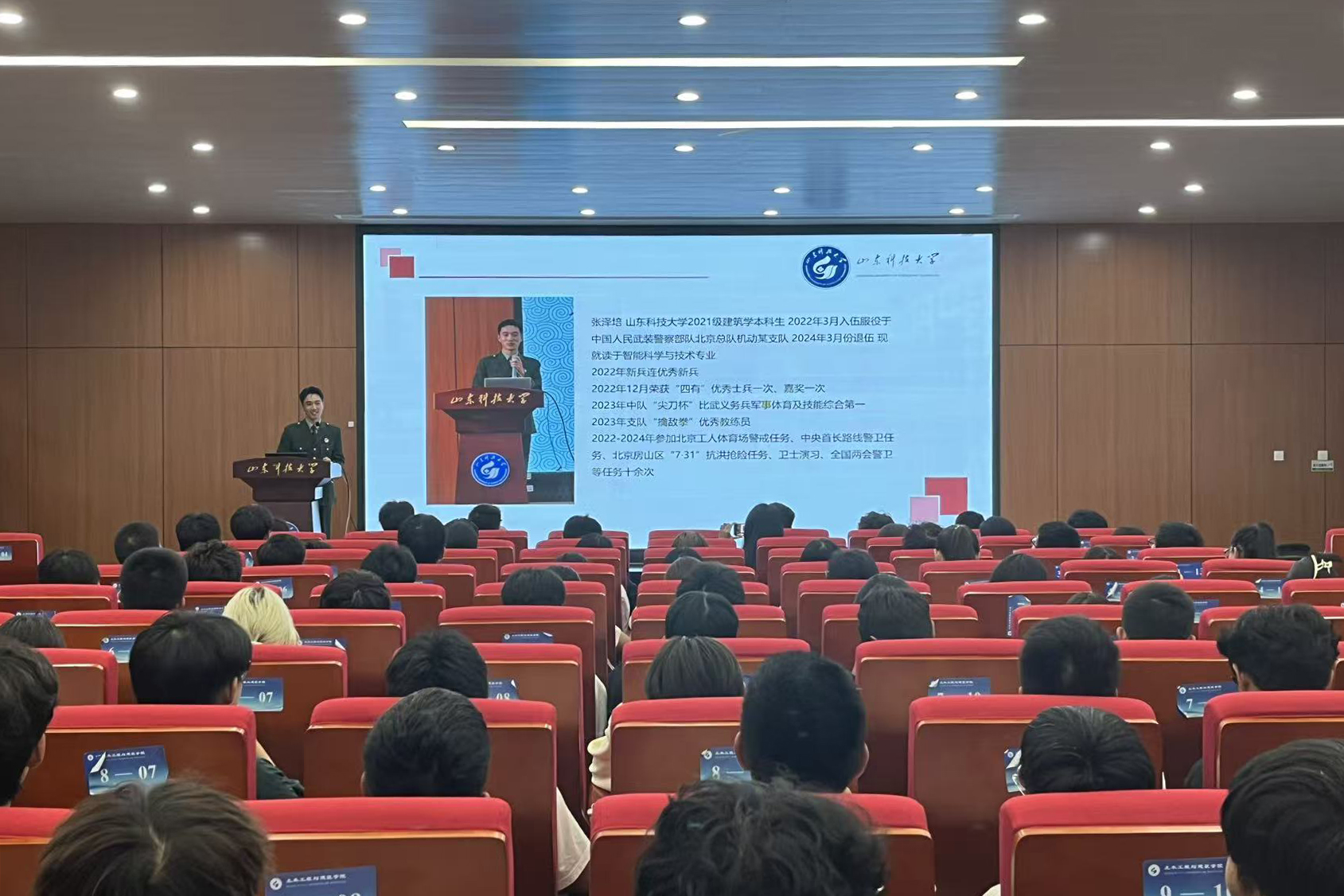 为落实立德树人根本任务,深化国防教育实践,充分发挥退伍大学生朋辈引领作用,增强学生国防意识和激发参军报国热情,9月23日,土建学院于J15-136报告厅举办军旅生涯分享会,计算机学院退役大学生张泽培、土建学院退役大学生尹国鹏应邀参与分享,学院2025级本科新生参加此次分享会。