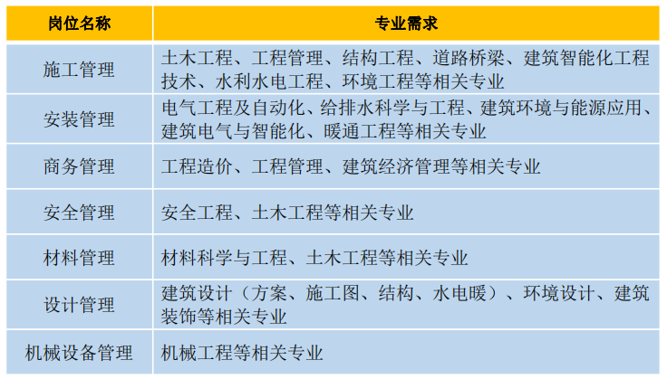 需求专业为:土木工程、工程管理、建筑电气与智能化、电气工程及自动化、建筑环境