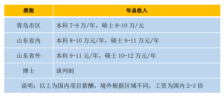 行业领先的薪酬、奖金、项目激励,项目区域补贴、驻外补贴、职称补贴、注册证书补贴、五险一金、带薪年假、落户青岛、餐补、过节费、节日福利、免费体检、公派继续教育、培训等薪酬福利。