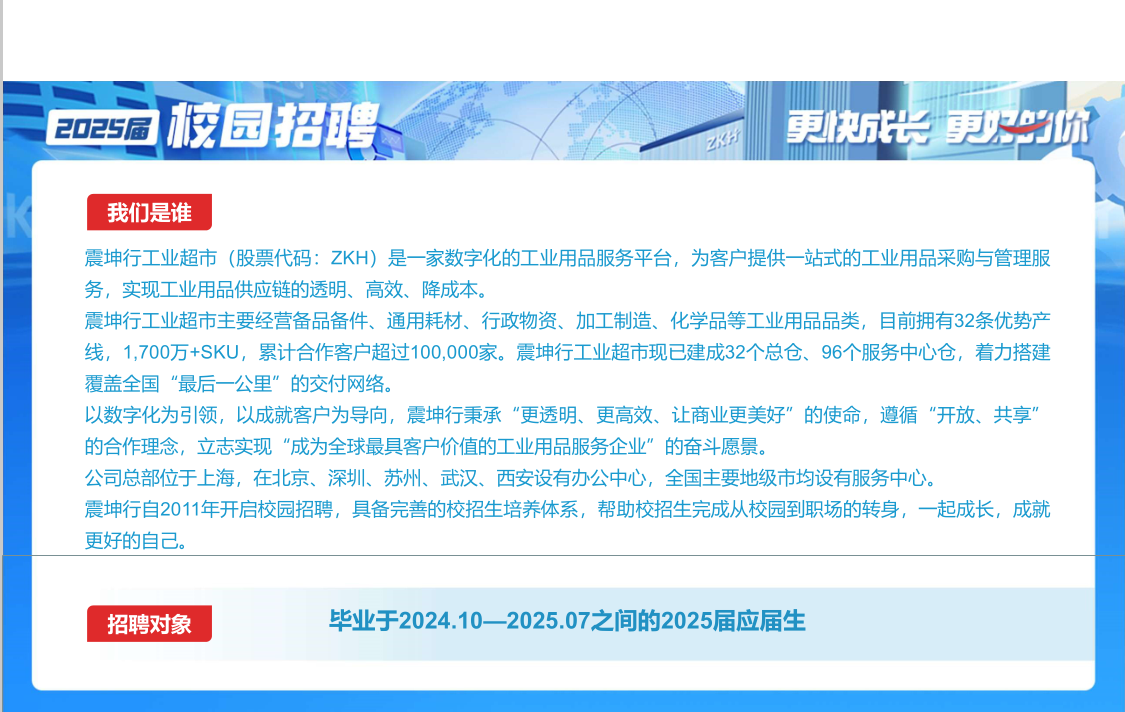 招聘信息(027)震坤行工业超市