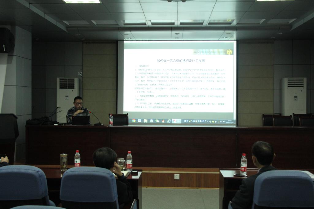11月27日,土建学院举办厚土讲坛2019年第12期,特邀建筑设计及管理工作专家杨平作“普通钢结构设计”报告、贝格设计院王奕钧作“装配式钢结构设计”报告。报告会由学院王来教授主持,土木工程系师生积极参加。报告中杨平分享了轻钢结构设计经验并分析了钢结构产业的发展趋势,王奕钧介绍了装配钢结构的设计要领。