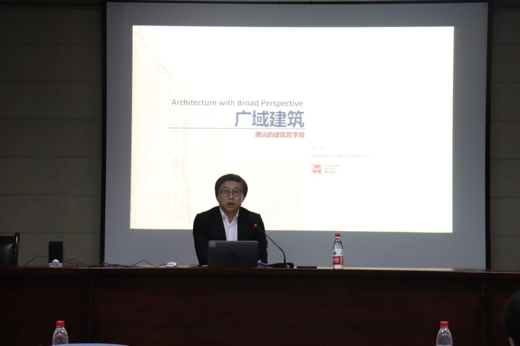 11月23日下午,土建学院邀请到全国勘察设计行业优秀企业家、青岛市拔尖人才、青岛腾远设计事务所董事长赵广俊为学院师生作题为“广域的建筑”的报告,介绍了腾远设计事务所的设计立足点以及多项杰出设计案例。学院院长王崇革主持了本次报告,建筑系、规划系、建环系相关老师和各年级学生到场参加。