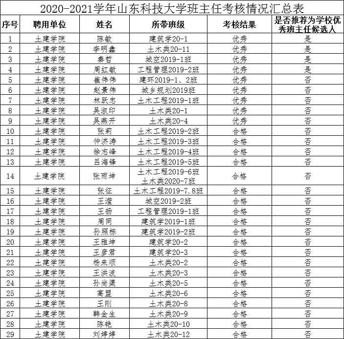 根据《关于做好2020-2021学年班主任考核及评优工作的通知》精神,我院开展了2020-2021学年班主任考核及评优工作,经过个人自评、学生测评、学院综评等工作程序,确定林跃忠等9人考核结果为优秀,并从中评选出陈敏等4人作为优秀班主任推荐人选;现将人员名单及相关材料进行公示,公示时间为9月3日~5日。