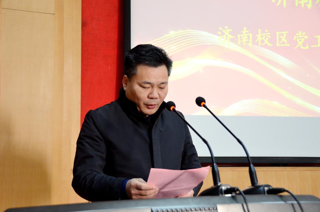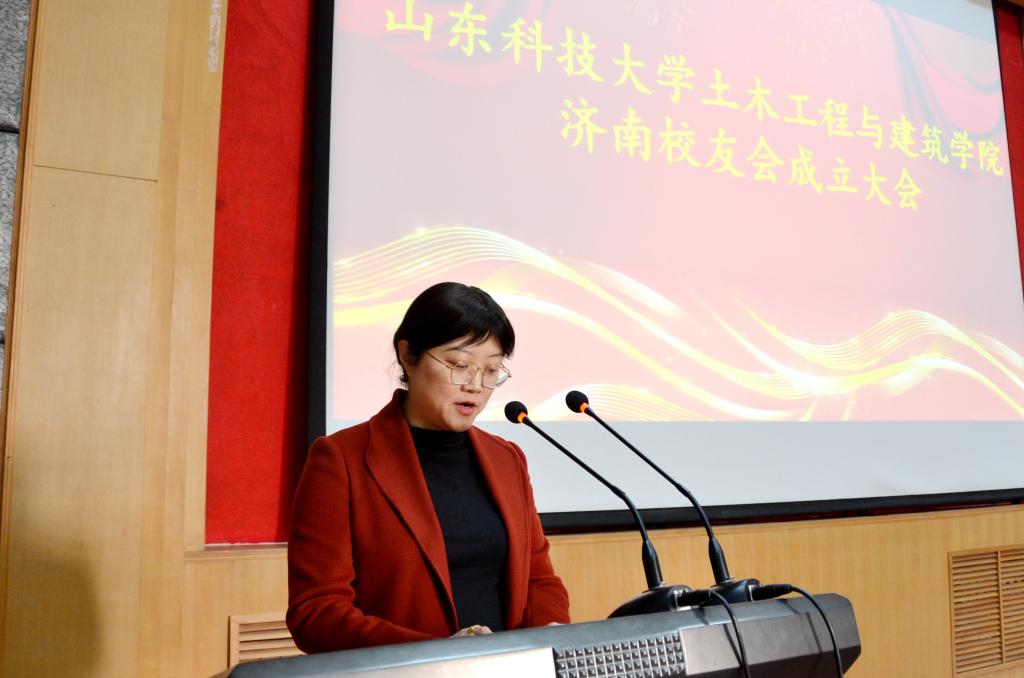 单德勇向大会汇报校友会筹备情况 济南校区党工委副书记贾长响宣读《山东科技大学土木工程与建筑学院济南校友会章程》