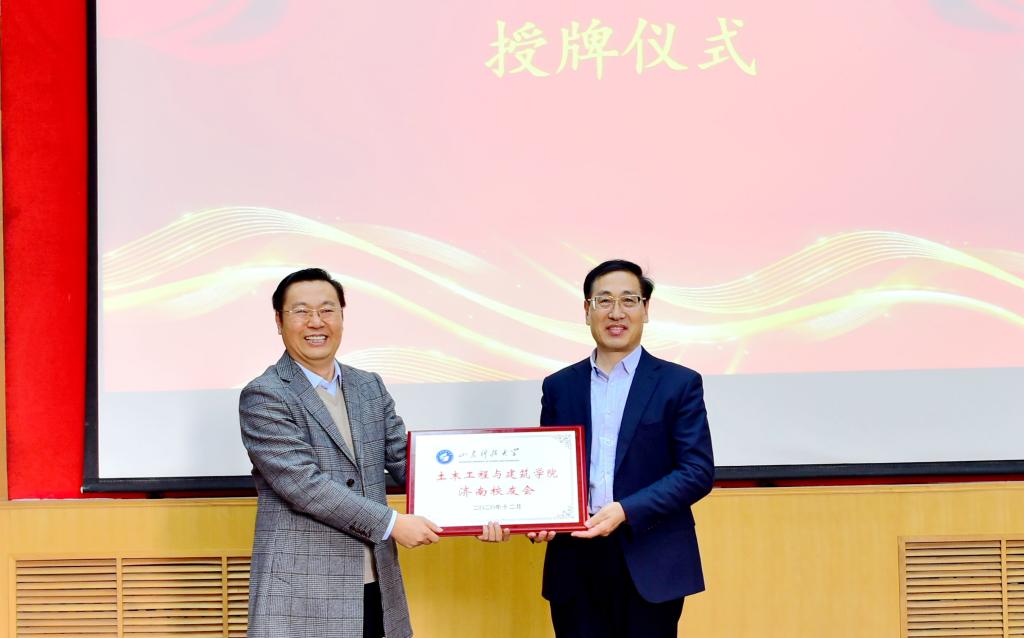 孙鹤汀代表学校对土建学院济南校友会的成立表示热烈祝贺,他回顾了学校与校友工作的发展历史,与校友们分享了学校近年来取得的成绩。他强调,校友会是联系学校和校友的情感纽带、重要平台,希望校友会能够以服务校友为宗旨、以回馈母校为己任、以奉献社会为使命,真正成为传递信息、增进友谊、加强协作、共谋发展、共建共享的平台。