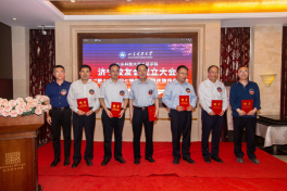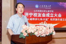 孙鹤汀代表学校对土建学院济宁校友会的成立表示热烈祝贺,他回顾了学校与校友工作的发展历史,与校友们分享了学校近年来取得的成绩和“一家人一家亲,守望相助,共荣共进”的校友工作理念,他强调,校友会是联系学校和校友的情感纽带和交流平台,希望校友会建成加强联系,促进交流,增进友情,共享互助,促进校友事业发展,襄助母校事业发展的平台。他强调,母校70华诞是37万海内外校友共同的节日,校庆旗传递是校庆系列活动之一,校庆旗在山东省内各校友会及全球范围内各校友会进行接力传递。希望广大校友积极参与校庆活动,更好传承学校文化,凝聚校友力量,扩大社会影响,并诚邀广大校友回母校同襄盛会,畅叙友情。