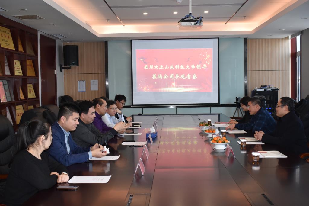 宋西路和高立滨共同为“山东科技大学大学生就业创业实践基地”“山东科技大学教学实践基地”揭牌,师生代表在副总经理、工程负责人、企业管理人员等一行陪同下到会议室进行座谈交流。