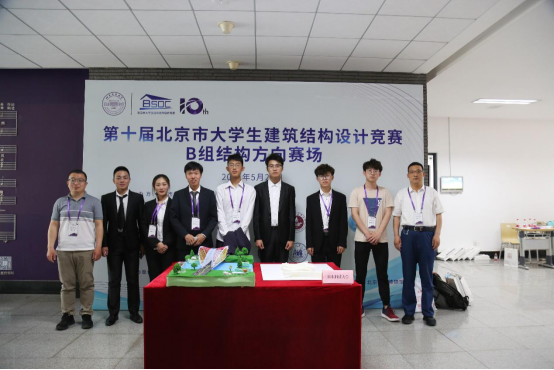 本次北京市大学生建筑结构设计竞赛B组分为结构组和桥梁组,赛事追求建筑学与土木工程专业的学科交叉以及理论与实践的具体结合。备赛期间,学院领导高度重视,团委老师提供了全方位的备赛保障,专业老师给予了悉心指导。我院12位队员在前期模型制作、答辩、现场模型展示等环节稳扎稳打、齐心合力,将匠心独具的设计、精巧细致的做工、全面充分的展示、简练精准的答疑一一展现在专家评审和参赛师生面前,最终双双荣获二等奖。