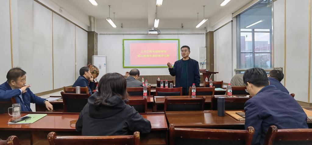 为贯彻落实“立德树人”根本任务,进一步加强学院青年教师队伍建设,提升青年教师教学能力和业务水平,促进青年教师研究教学规律、钻研教学艺术、创新教学方法、推动课堂教学改革,助推学院“一流课程”建设,根据学校文件精神要求,土建学院于10月20日在J15-201举办第二十三届青年教师讲课比赛。比赛评委由学院学术委员会主任王来、党委书记宋西路、院长王崇革、副院长李朋、学院教学督导组组长孙跃东、督导戴素娟、魏秀婷,系所专业负责人和骨干教师刘玉峰、单景松、冯强、王飞等11人组成,参赛青年教师来自学院各系所,讲课比赛由副院长李朋主持。