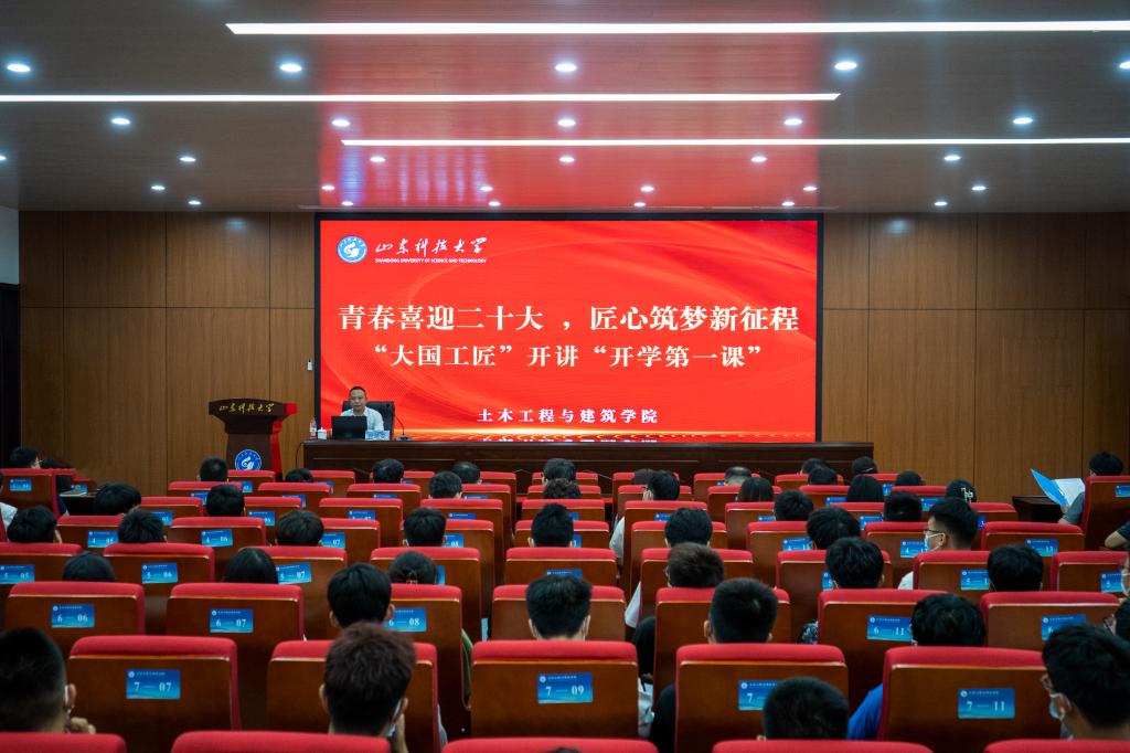8月29日,山东科技大学开学第一天,拧60万颗螺丝零失误、靠一个扳手成就港珠澳深海隧道的“全国劳模”获得者、大国工匠管延安应邀来校,以“以工匠精神之道夯实责任与担当”为题,为土建学院师生上新学期第一课,用一颗匠心从精神上为师生们拧紧螺丝钉。报告会由土建学院院长王崇革主持。