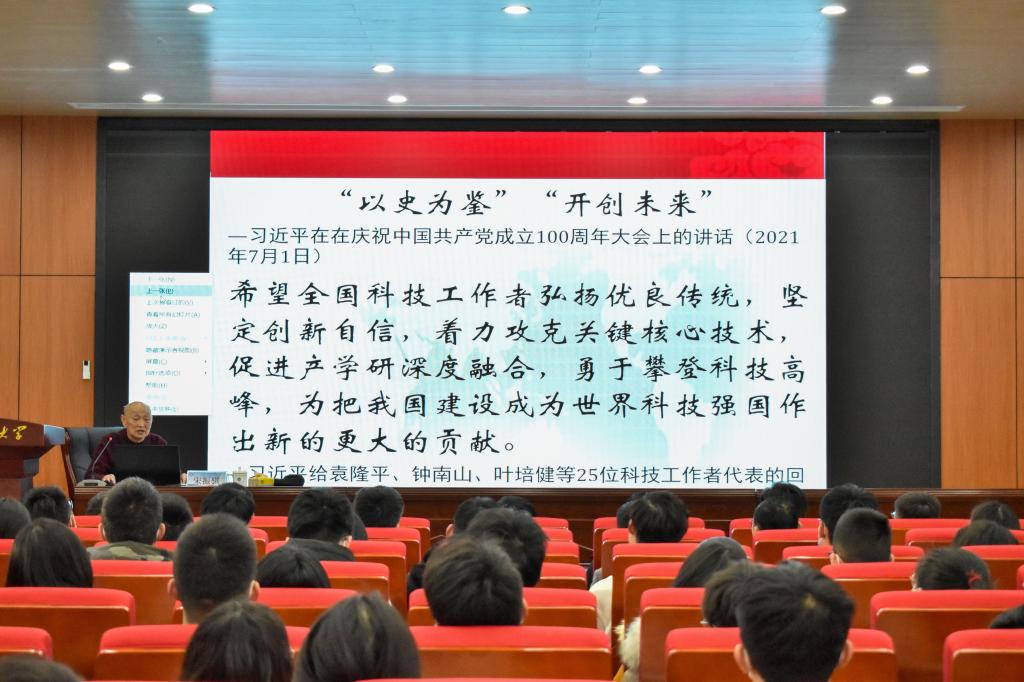 课堂上,宋振骐详细讲述了艰辛的求学路程、激情幸福的大学生活以及当选院士、全国政协委员并继续奋斗的征程,希望在座的老师和同学们能够坚定共产主义远大理想和中国特色社会主义共同理想,不断把为崇高理想奋斗的伟大实践推向前进,能够利用好学校学院项目资源和科研平台,加强主动学习能力,要耐得住寂寞,主动出击,砥砺向前,勇攀科学高峰。