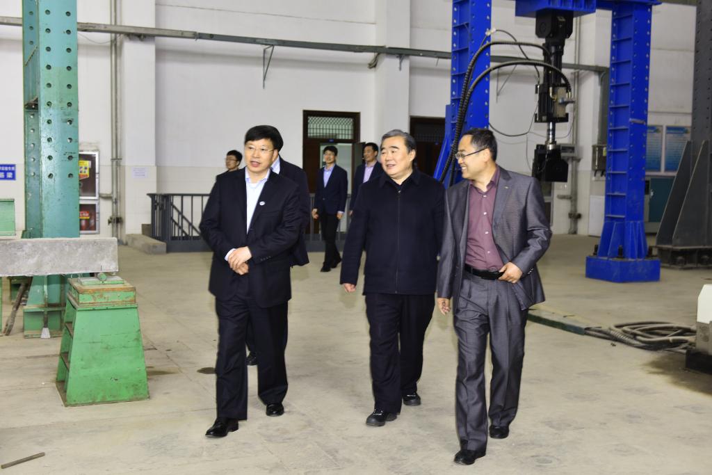 4月30日,河南理工大学校长杨小林、科学技术处处长李振华、土木工程学院党委书记刘希亮等一行在校长姚庆国、科技处处长陈连军、土建学院院长王崇革等陪同下,到土建学院参观交流。