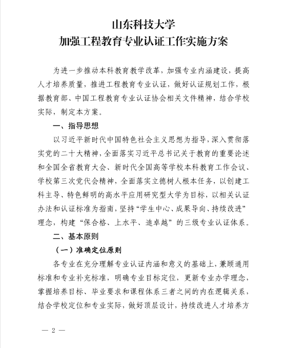 关于印发《山东科技大学加强工程教育专业认证工作实施方案》的通知